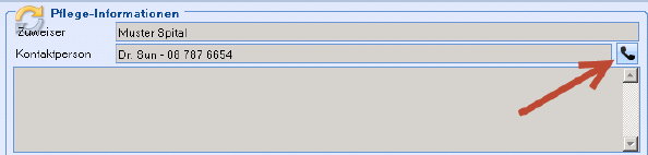 Hat der Anmelder Informationen zur Erreichbarkeit der Kontaktperson hinterlegt, erscheint ein Telefonsymbol. Wenn die Maus darauf bewegt wird, erscheinen als Tooltip weitere Informationen zu diesem Kontakt.