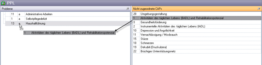 Drag & Drop bedeutet, dass Sie ein Objekt oder einen Datensatz markieren und mit gedrückter linker Maustaste an den gewünschten Ort ziehen. Diese Aktion wenden Sie zum Beispiel an, um ein CAP mit dem gewünschten Problem zu verknüpfen.
