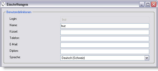 In diesem Menü nehmen Sie Einstellungen vor, die für den angemeldeten Benutzer Gültigkeit haben. Im oberen Teil der Maske werden die persönlichen Angaben des Benutzers angezeigt.