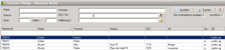 Standardmässig blendet das System die Sortierung ein, welche im geöffneten Modul zuletzt verwendet wurde. Nachfolgend ist beschrieben, wie Sie die Filterung einer Klientensuche noch verfeinern.