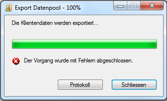 Beim Starten des Exports erscheint ein Fortschrittsbalken. Falls keine Fehler aufgetaucht sind, wird der erfolgreiche Export gemeldet.
