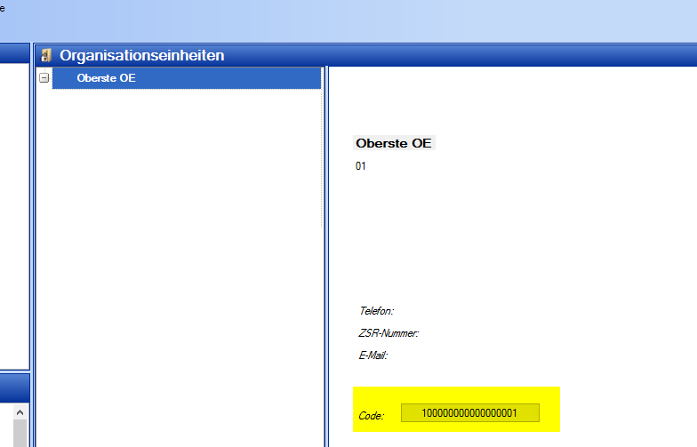 Falls der OE-Code unbekannt sein soll, kann diese Nr. in der NEXUS / SPITEX Administration wie folgt in die Zwischenablage kopiert werden: