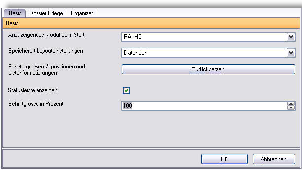 - Datenbank: Die gemachten Veränderungen werden in der Datenbank gespeichert. Diese Einstellung bewirkt, dass Sie sich mit Ihrem Benutzernamen an unterschiedlichen PCs anmelden können und immer die gleichen Fenstergrössen und -positionen haben.