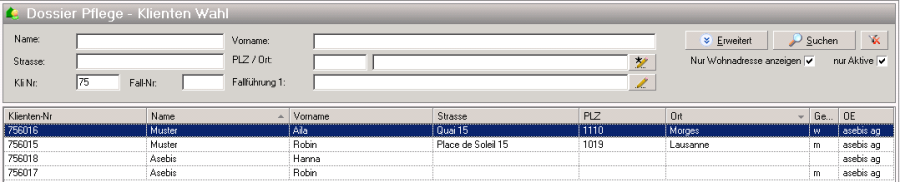 Sie haben die Möglichkeit in Auswahllisten einen Filter anzuwenden, um nur bestimmte Informationen anzuzeigen. Dies ist nützlich, wenn Sie in sehr grossen Listen die Übersichtlichkeit erhöhen möchten. Dieser Filter ist überall da verfügbar, wo Informationen in einer Liste dargestellt werden. Die Vorgehensweise, wie Sie einen Filter aktivieren bzw. deaktivieren wird anhand der Klientensuche beschrieben.