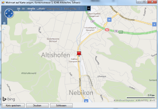 Über die Schaltfläche Karte (online) haben Sie die Möglichkeit, eine Strassenkarte mit der Wohnadresse des Klienten aufzurufen. (Voraussetzung dafür ist eine Verbindung mit dem Internet).