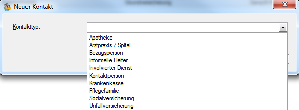 Wählen Sie den Kontakttyp aus dem Dropdown-Menü und erfassen Sie die notwendigen Felder im sich öffnenden Dialog.