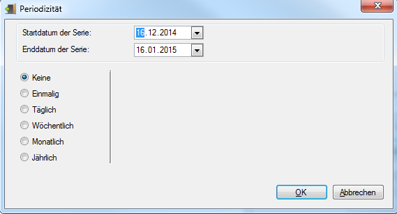 Falls sich die Abwesenheit um eine wiederkehrende Absenz handelt, können Sie die Option Serienabsenz wählen. Dabei wird die Schaltfläche Periodizität aktiv.