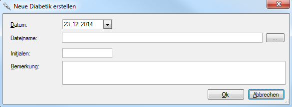 Sie können über den Befehl Dokument importieren… im Kontextmenü ein schon vorhandenes Dokument ins Diabetische Protokoll übernehmen. Tragen Sie Datum und Initialen sowie allfällige Bemerkungen ein, definieren Sie über das Icon