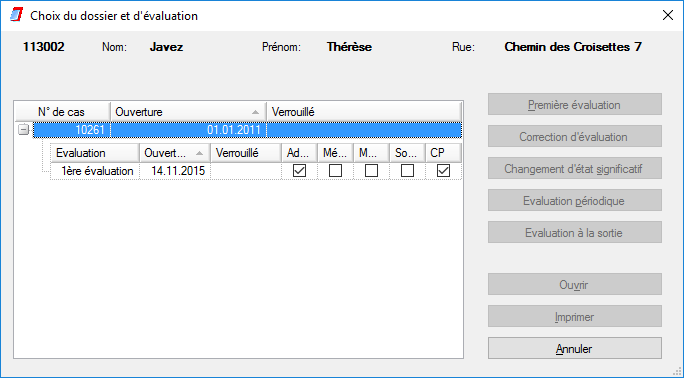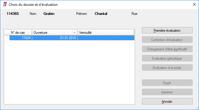 | Sélectionner Évaluation : | Grâce à cette icône, vous pouvez choisir une évaluation du client actif. Une fenêtre apparaît alors et vous donne toutes les évaluations disponibles concernant le client. |