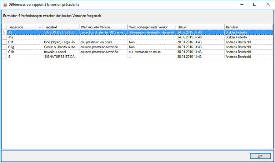 Les entrées Évolution du formulaire adressé aux médecins sont automatiquement générées par le système.