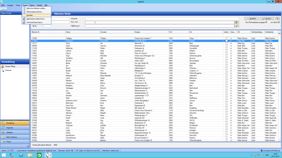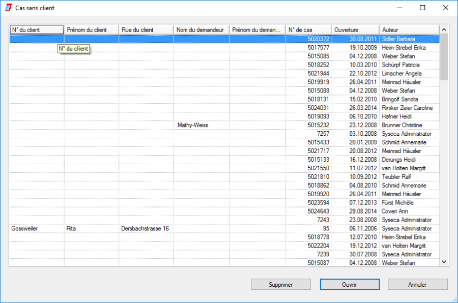Les données les plus importantes du client (numéro client, nom et prénom, adresse, numéro de téléphone) issues des données de base et de l'évaluation existante s'affichent dans la section supérieure de gauche du masque client.
