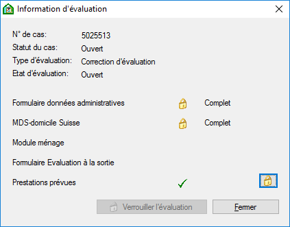 MDS incomplet Signifie que les formulaires ne sont pas encore totalement remplis. Un compte-rendu de l'évaluation avec ce type de statut permet d'avoir un aperçu sur l'état de saisie actuel. Toutefois, aucune évaluation terminée ne peut être prévue.