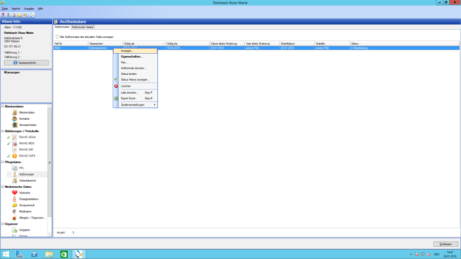 Lors de la création du formulaire de déclaration des soins (chapitre 5.2.1), le statut peut être sélectionné. La possibilité d'aperçu suivante existe pour pouvoir garder un œil sur le statut des messages de besoins :