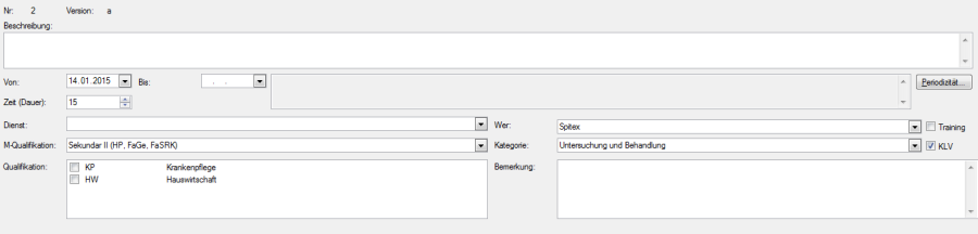 Unterhalb der gewählten Leistungen wird ein Bearbeitungsbereich angezeigt, welcher für jede Leistung auszufüllen ist.