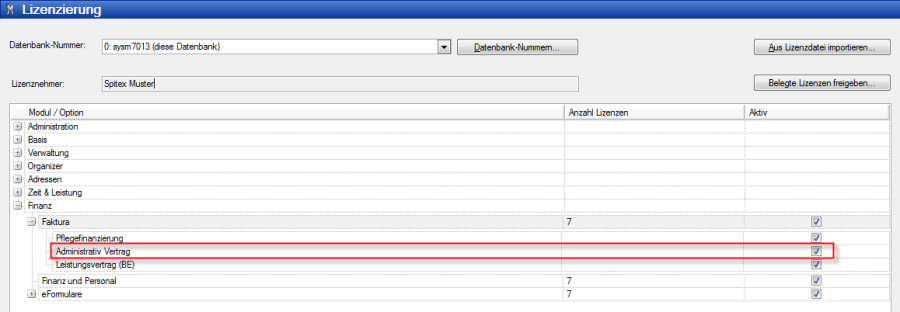 In der Lizenz muss der Administrativvertrag wie auf dem Bild unten aktiviert sein. Dies sollte bei den Lizenzen welche für die eFaktura vorbereitet sind aktiv sein