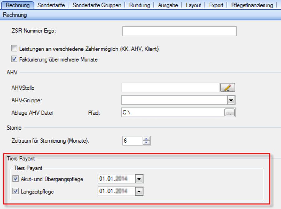 Um bereits bei der Parametrierung eine eFaktura zu erstellen muss das Tiers Payant auf den aktuellen Monat definiert werden.