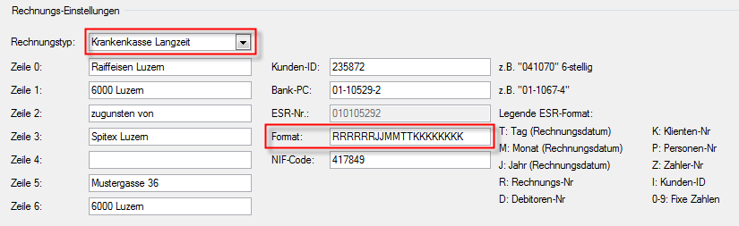 In NEXUS / SPITEX Administration unter Faktura – Layout – Rechnungs-Einstellungen müssen die Layout-Einstellungen für den Rechnungstyp Krankenkasse gemacht werden.