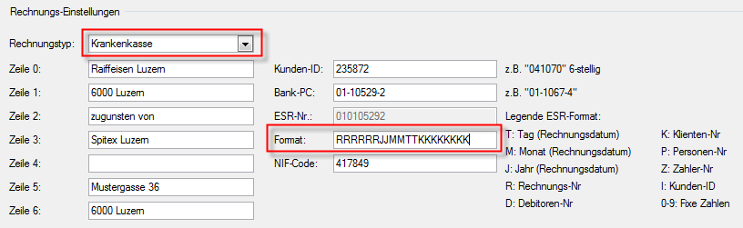 Beim Layout für Krankenkasse sind beim Format noch spezielle Anpassungen notwendig:
