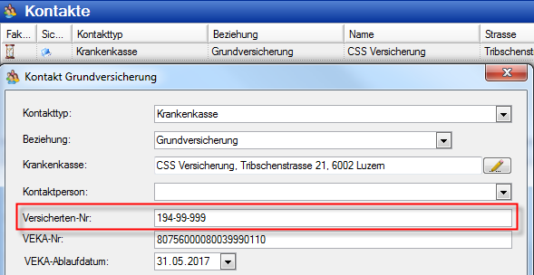 - Bei Krankenkasse Grundversicherung die Versichertennummer erfassen oder die Warnung als Akzeptiert markieren.