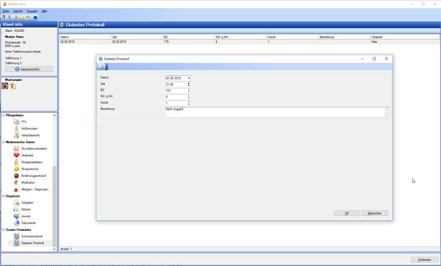 NEXUS / SPITEX NEXUS / SPITEX - Anleitungen Anleitung Zusatz-Formulare Current: Zweck Zweck In NEXUS / SPITEX® besteht die Möglichkeit, Formulare frei zu definieren. Die sogenannten Zusatzformulare sind Listen bzw. Fenster, welche man inhaltlich nach Bedarf frei gestalten kann. Beispiel frei gestaltetes Diabetes Protokoll: ×
